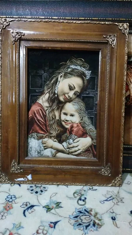 تابلو فرش دستباف چله ابریشم نام اثر مهر مادری انداز۴۰*۶۰