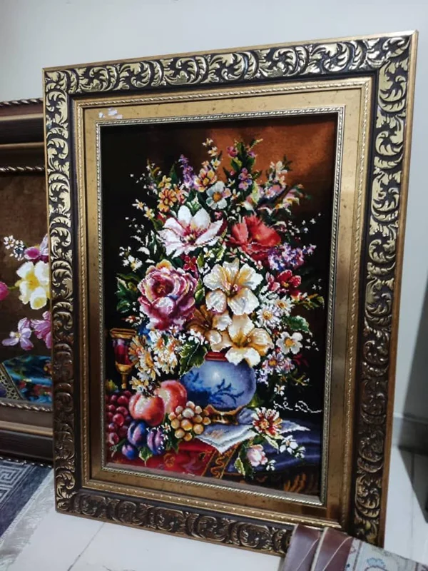 تابلو فرش دستباف تبریز چله ابریشم. نام اثر اهل کرامت گل ابریشم اندازه ۱*۱/۵